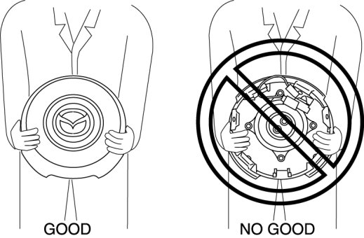 - Before removing the air bag module or disconnecting the air bag module connector, always turn the ignition switch to the LOCK position, disconnect the negative battery cable, and then wait for 1 min or more to allow the backup power supply of the SAS control module to deplete its stored power.