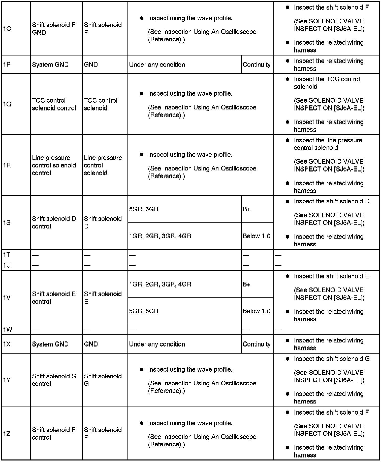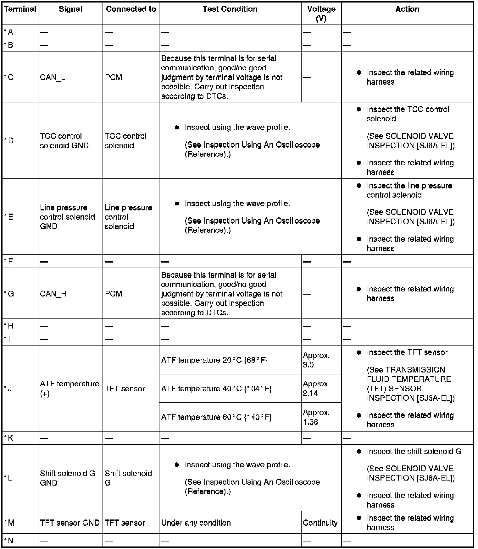 - Use the ground of terminal 1P and 1X of the TCM when measuring terminal voltage, as an error may occur when connecting the negative circuit tester to ground.