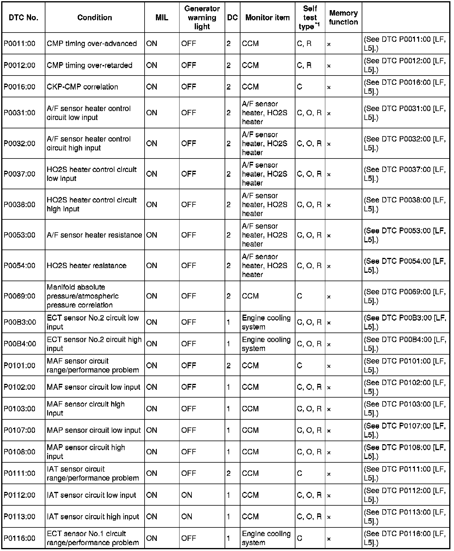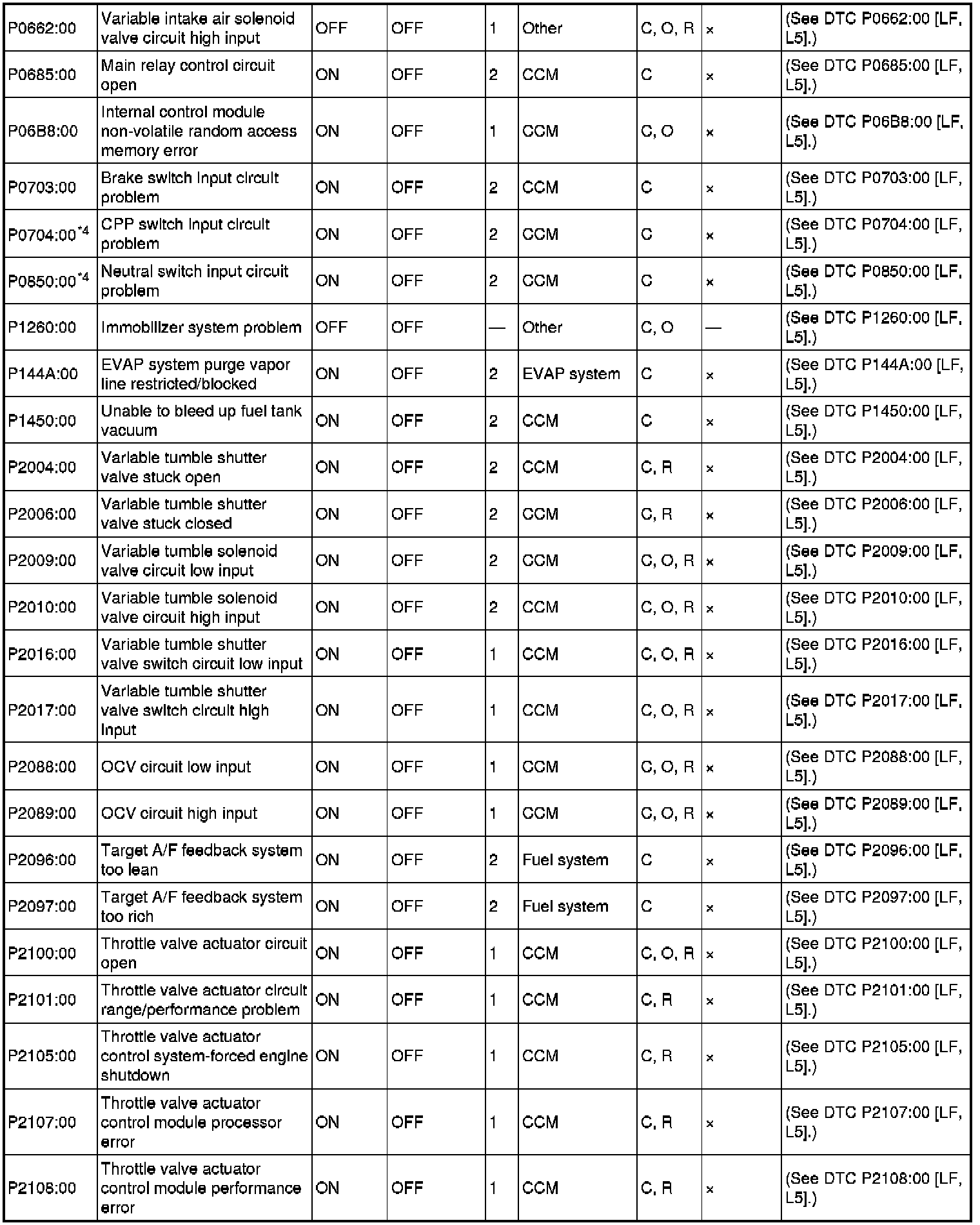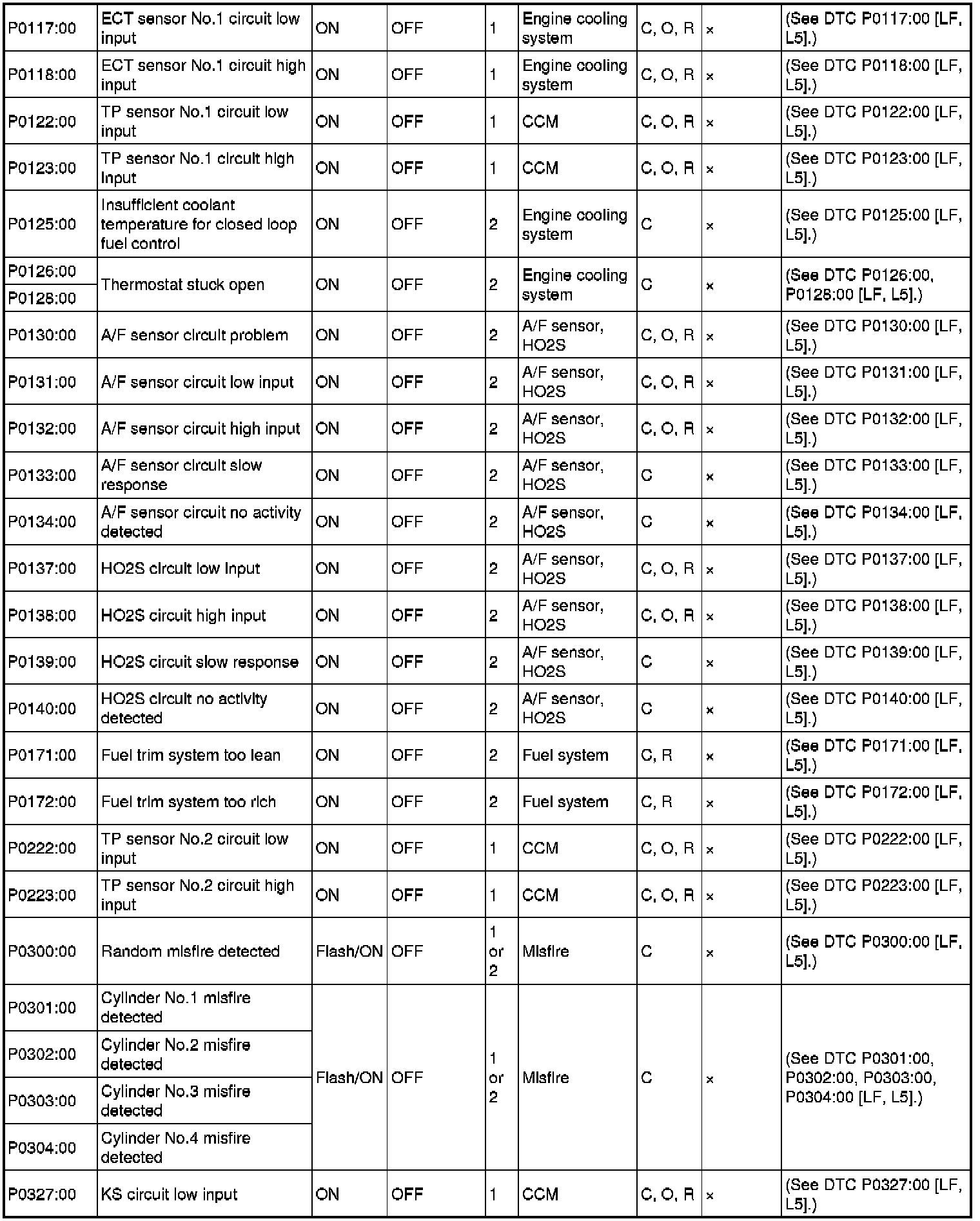 DTC TABLE [LF, L5]