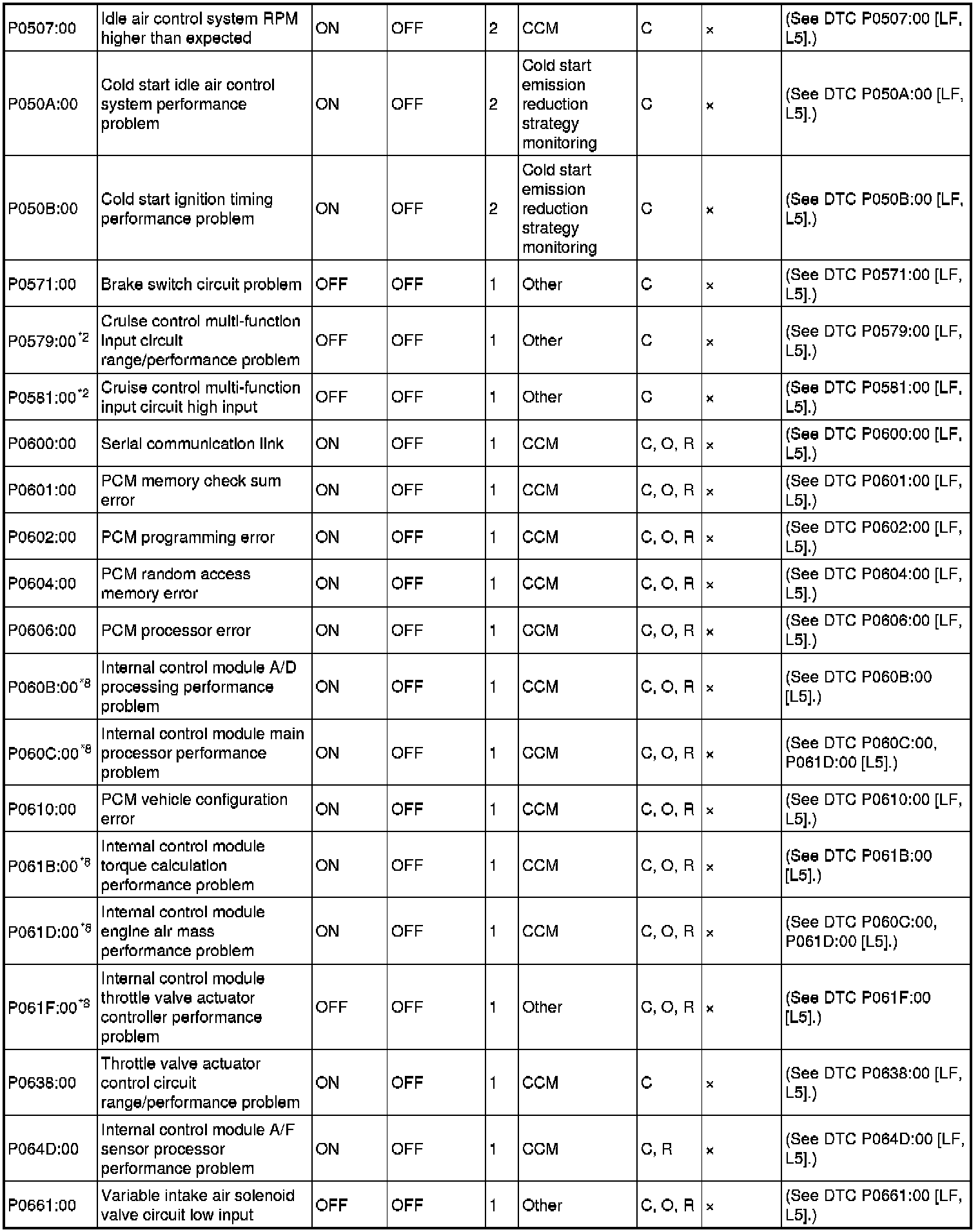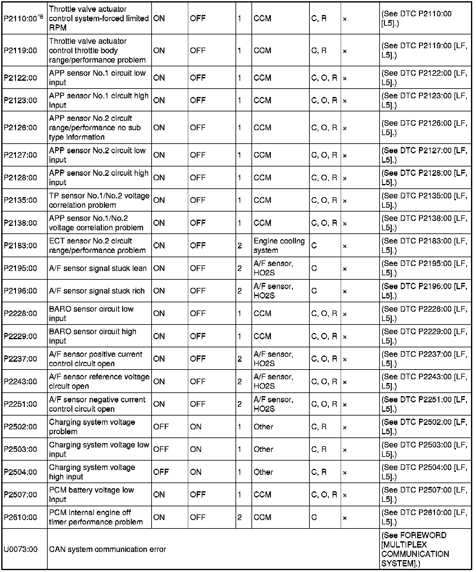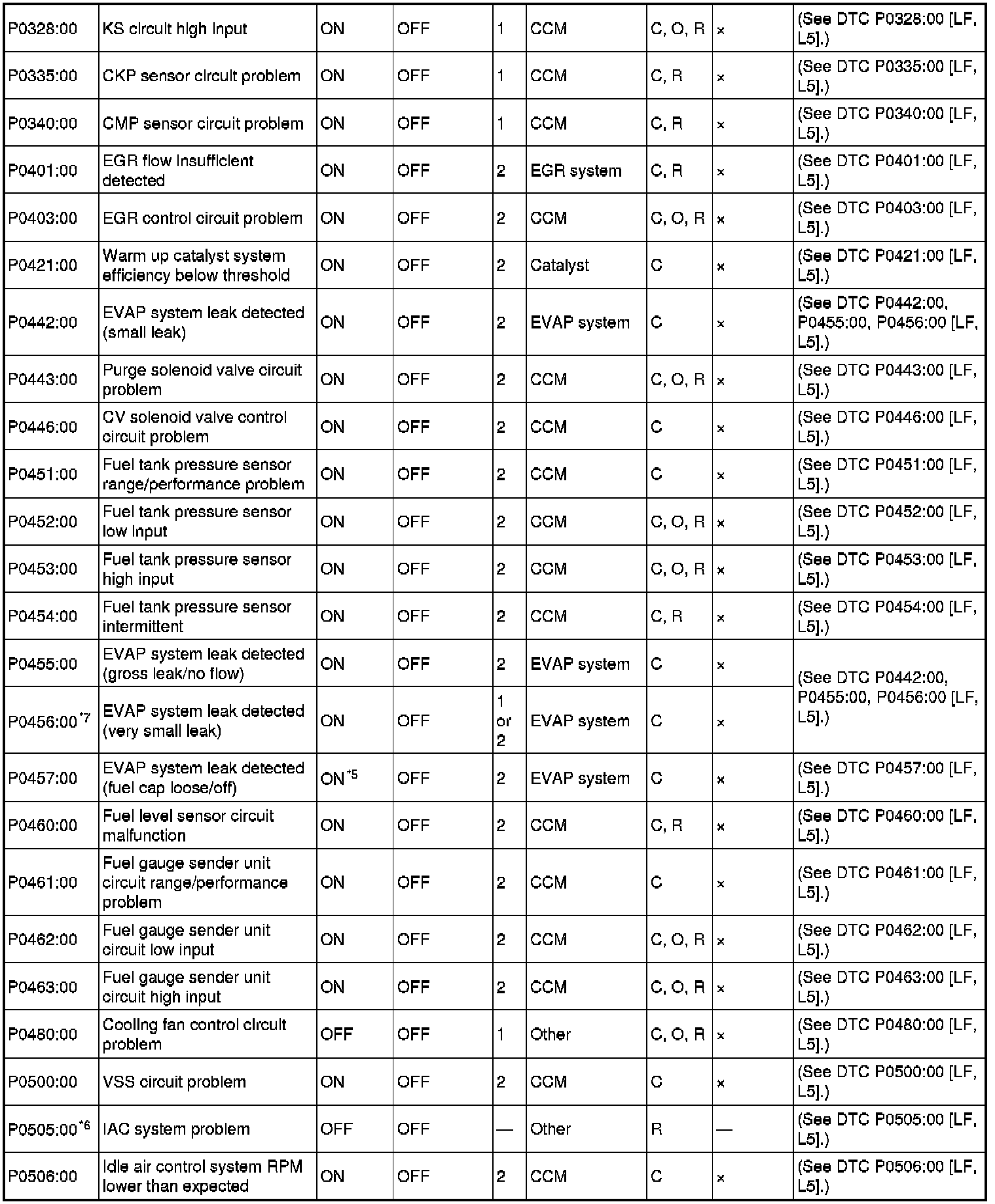 DTC TABLE [LF, L5]