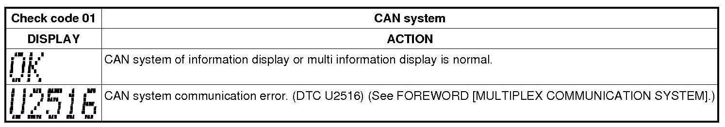 INFORMATION DISPLAY INPUT/OUTPUT CHECK MODE