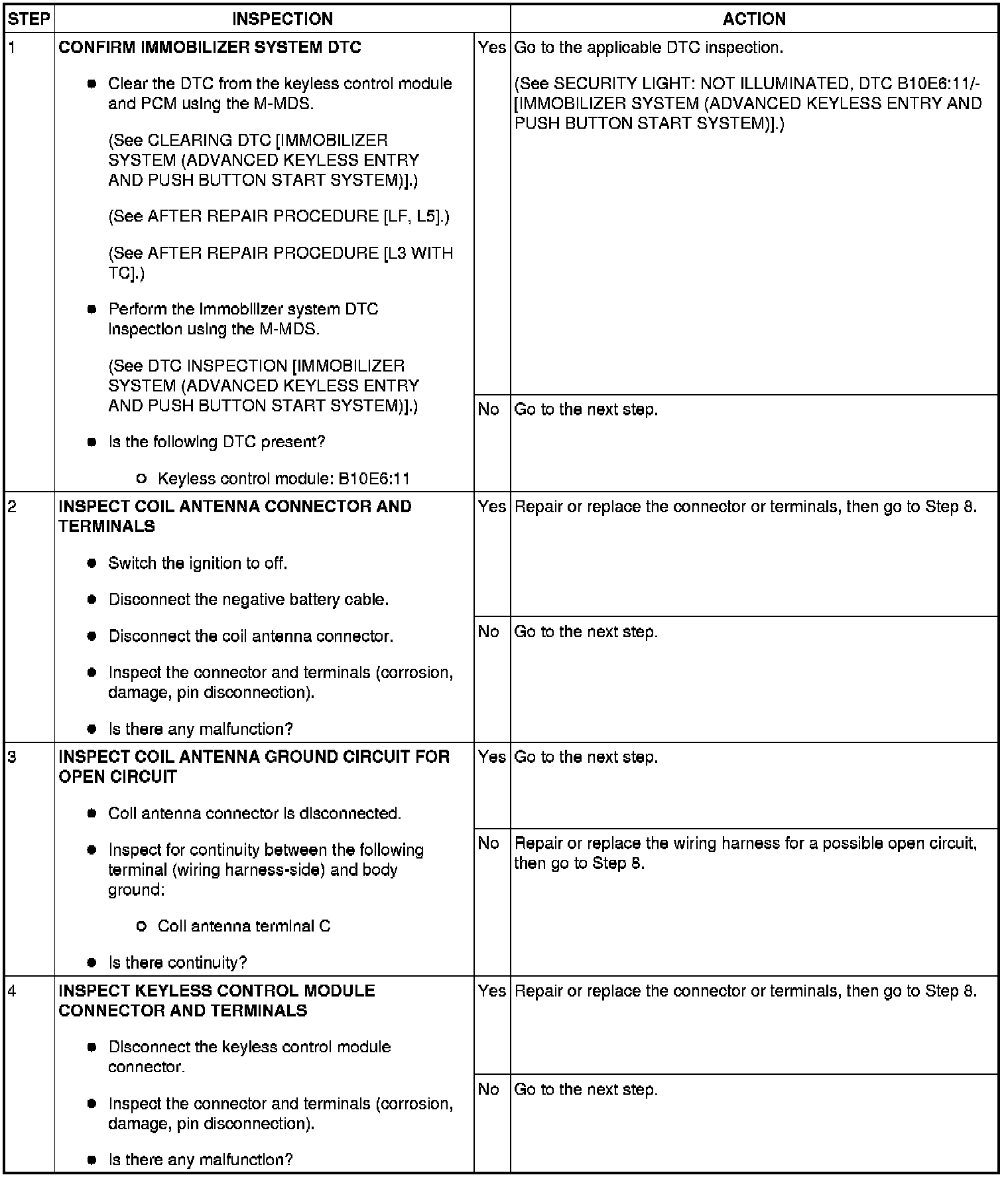 SECURITY LIGHT: 11, DTC: B10D9:87/P1260:00 [IMMOBILIZER SYSTEM (ADVANCED KEYLESS ENTRY AND PUSH BUTTON START SYSTEM)]