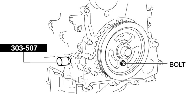 3. To position the crankshaft pulley, temporarily tighten it and, using a suitable bolt (M6 X 1.0), fix the crankshaft pulley to the engine front cover.
