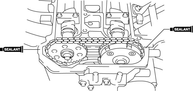 - Install the engine front cover before the applied silicone sealant starts to harden.