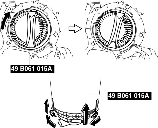 - To prevent damage to the sirocco fan, install the blower motor being careful that the blower motor does not interfere with the A/C unit. Also, another person must hold the blower motor at the installation position.