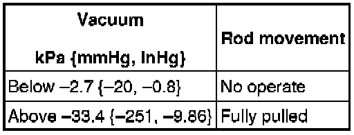 4. Check if the rod operates correctly as stated in the table when a gradual negative pressure is applied to the variable tumble shutter valve actuator.