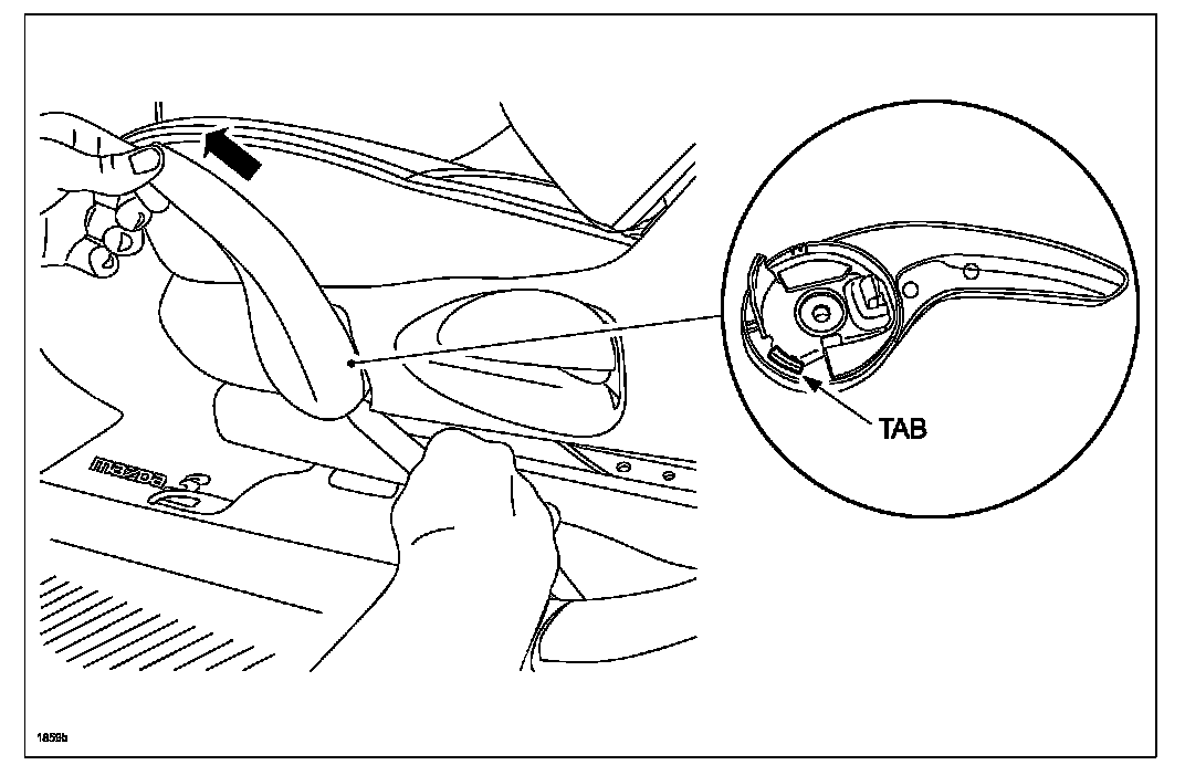 2. Remove the lift lever outer cover by releasing the tab as shown, then sliding the cover forward.
