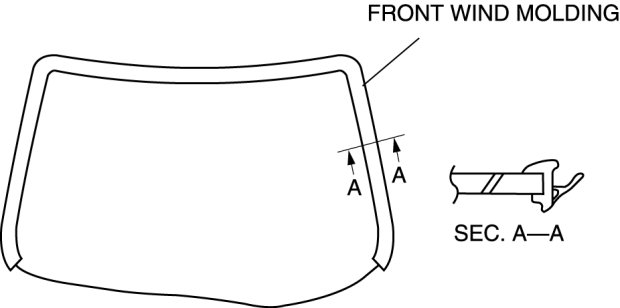 4. Align the alignment marks made before removal and install the pin to the windshield referring to the figure. (Reusing glass, pin removed)