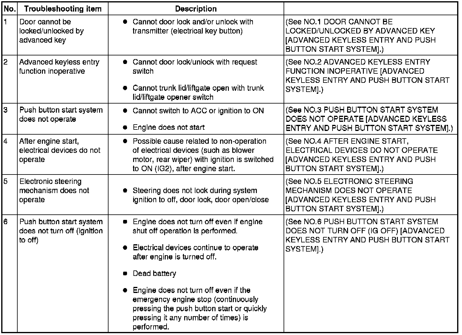 Symptom Troubleshooting Chart - Advanced Keyless Entry And Push Button Start System