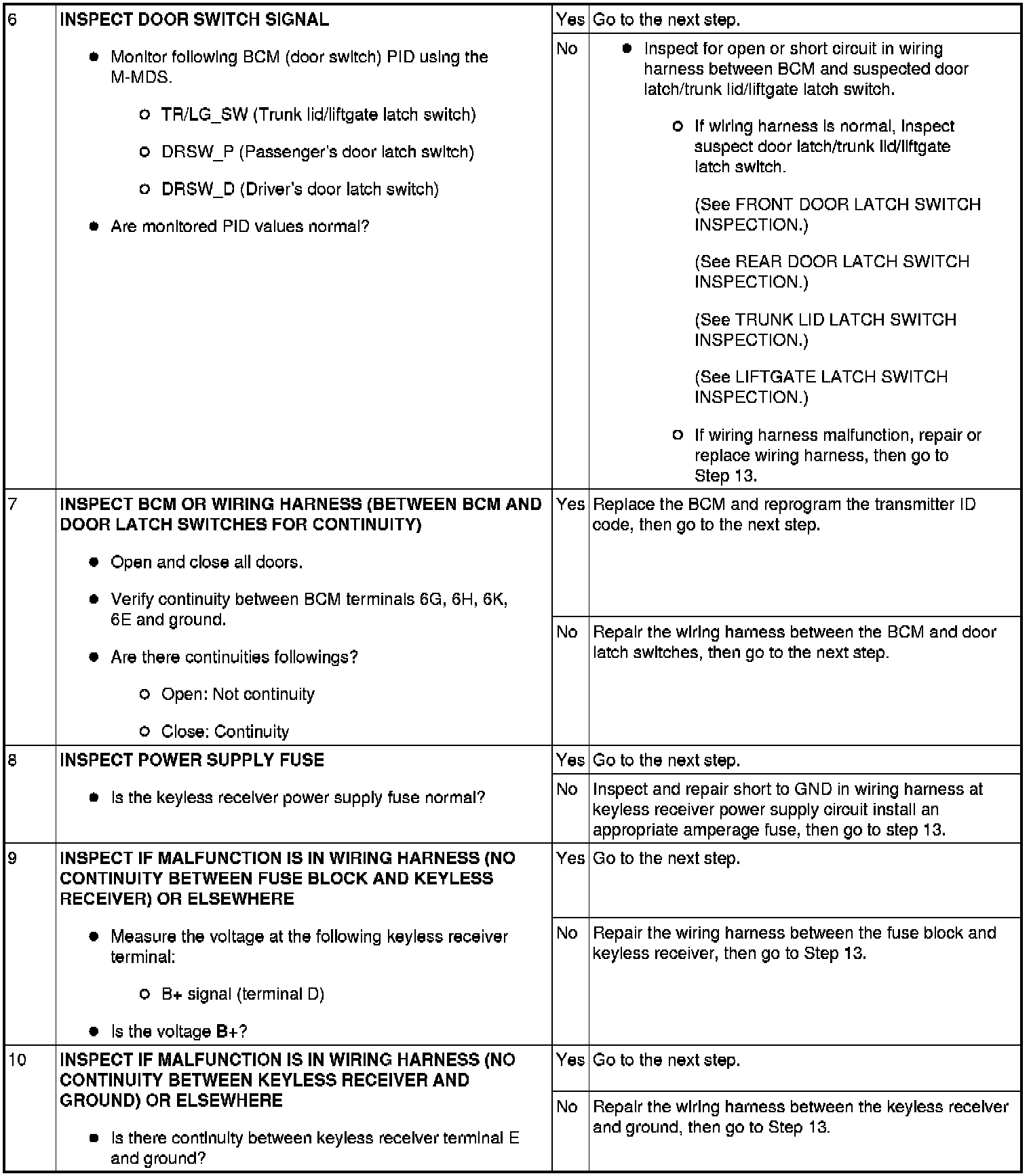 - When performing an asterisked (*) troubleshooting inspection, slightly shake the wiring harness and connectors while performing the inspection to discover whether poor contact points are the cause of any intermittent malfunctions. If there is a problem, verify that the connectors, terminals and wiring harnesses are connected correctly and undamaged.