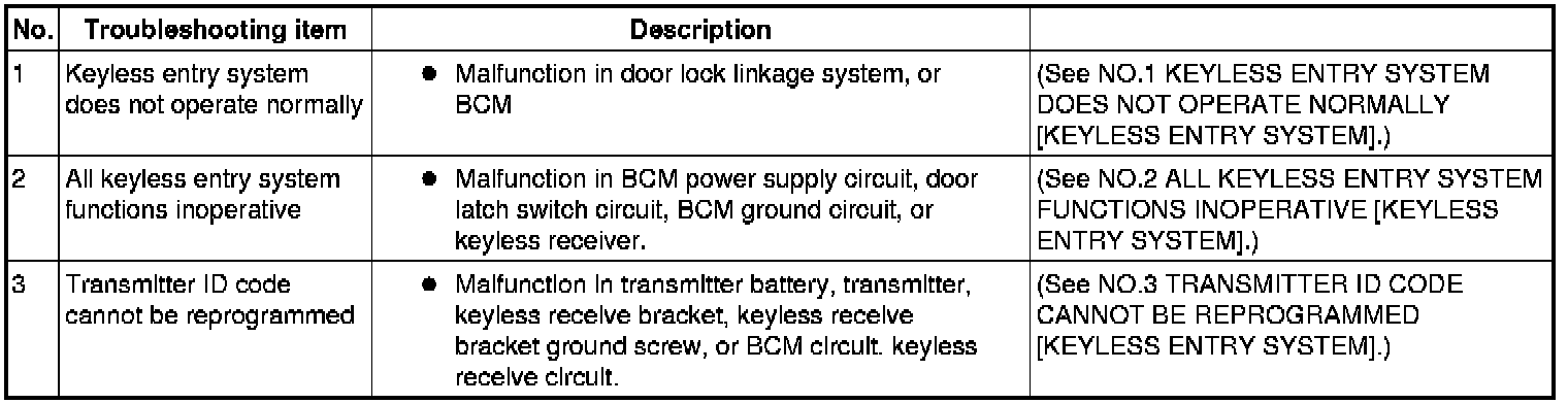 SYMPTOM TROUBLESHOOTING CHART [KEYLESS ENTRY SYSTEM]