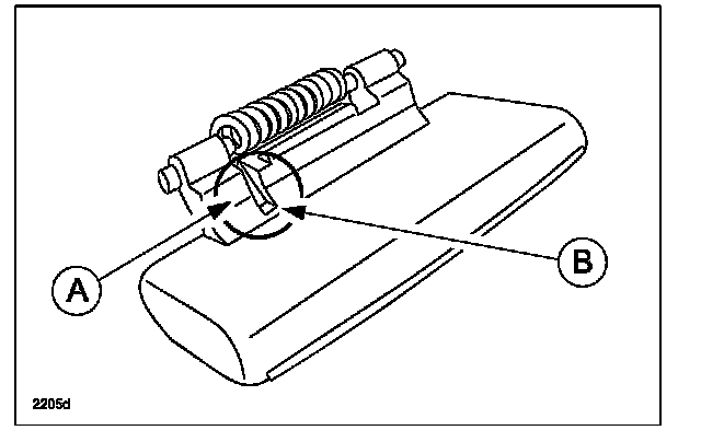 b. Insert the long straight end of the spring (A) into the slit of the console lid (B).