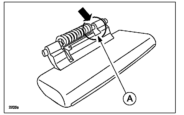 c. Push and compress the spring and fit it into the boss of the latch on the opposite side (A).
