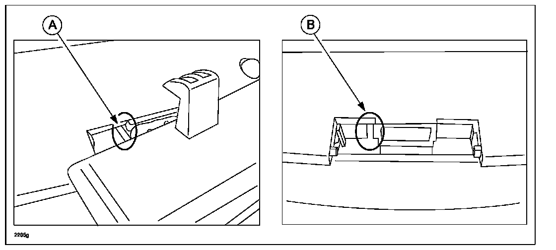 Some customers may experience that the console lid (A) does not lock. If the console lid is forcibly opened without releasing the console lid latch, the latch may come off. If the latch spring is not installed in a correct position when installing the latch, the latch will not operate.