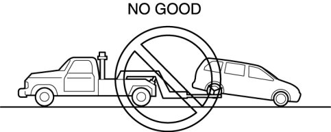 - Do not tow the vehicle pointed backward with driving wheels on the ground. This may cause internal damage to the transaxle.