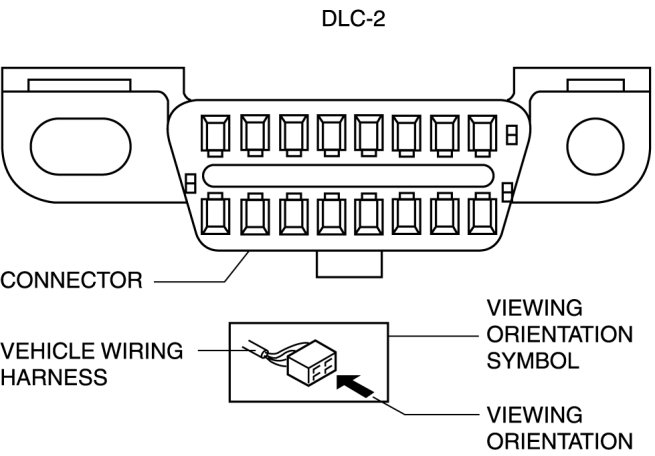 When it is necessary to show the terminal side of vehicle harness-side connectors, such as the following connectors, the viewing direction is from the terminal side.