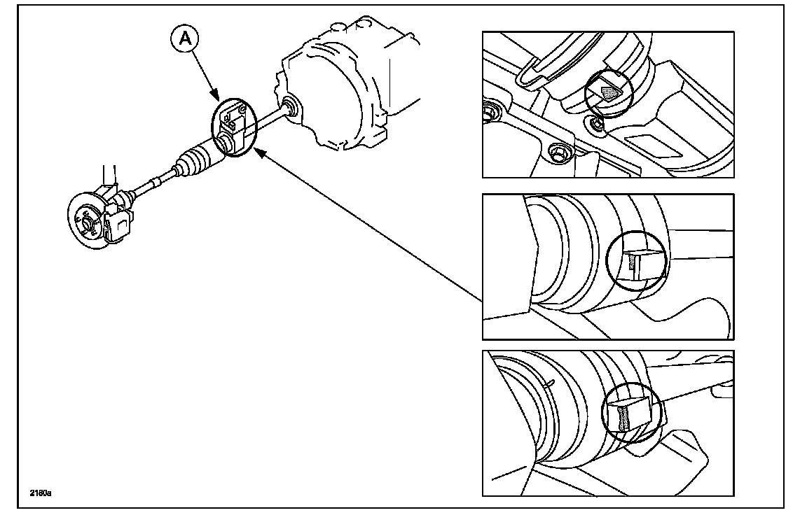 Some new vehicles may exhibit oil seepage underneath the bearing bracket (A) on the right side of the joint shaft. This is caused by the oil content separating from the grease applied to the bearing and spline seeping from the seal and bracket.