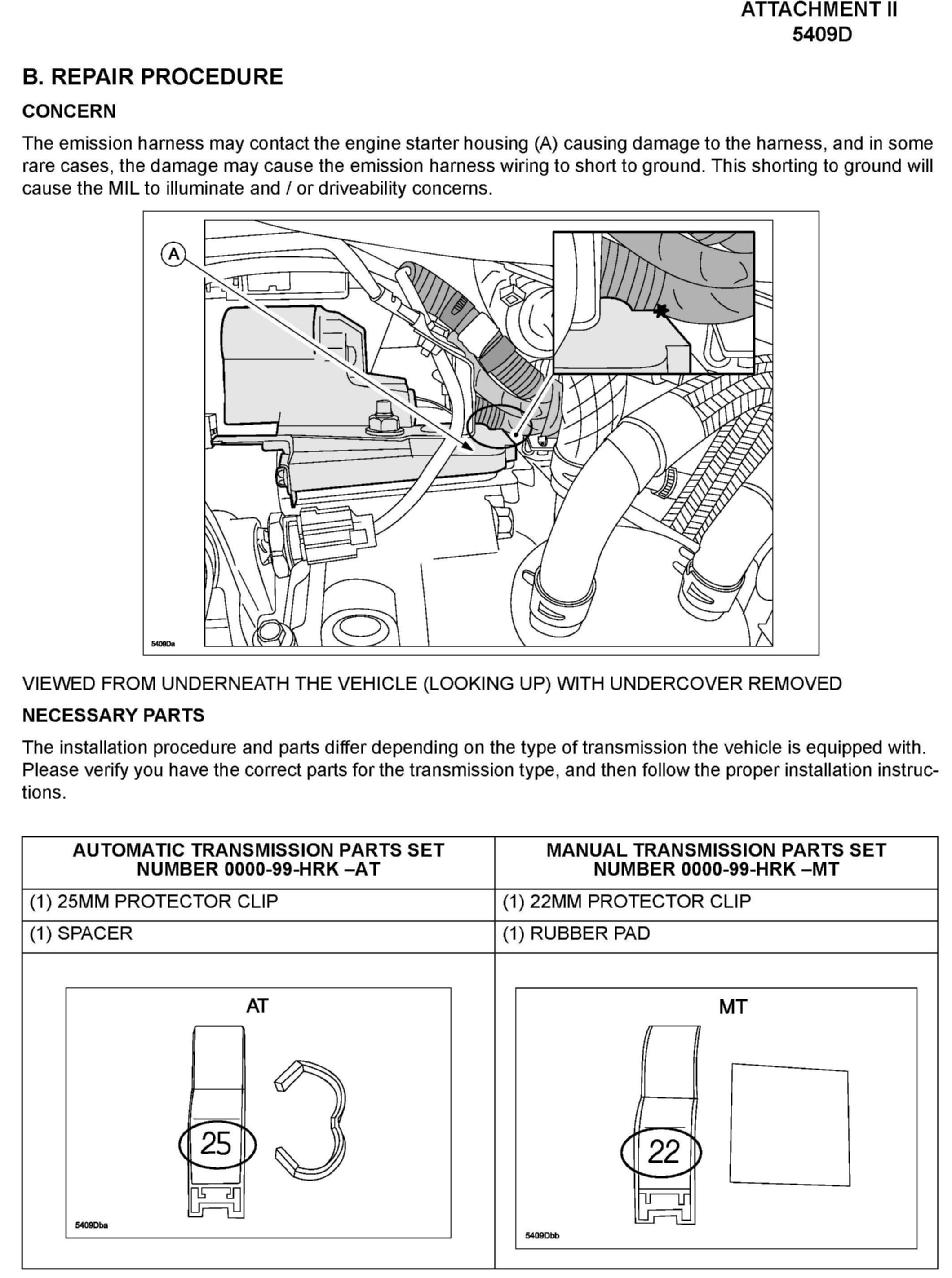 Recall - Emission Harness/Starter Interference
