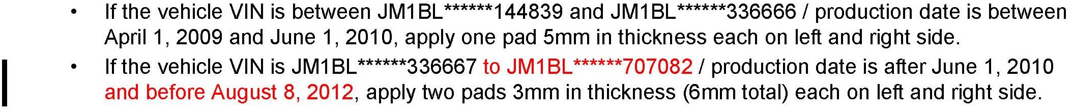^ This repair will be covered under Mazda's New Vehicle Limited Warranty term. Additional diagnostic time cannot be claimed for this repair.