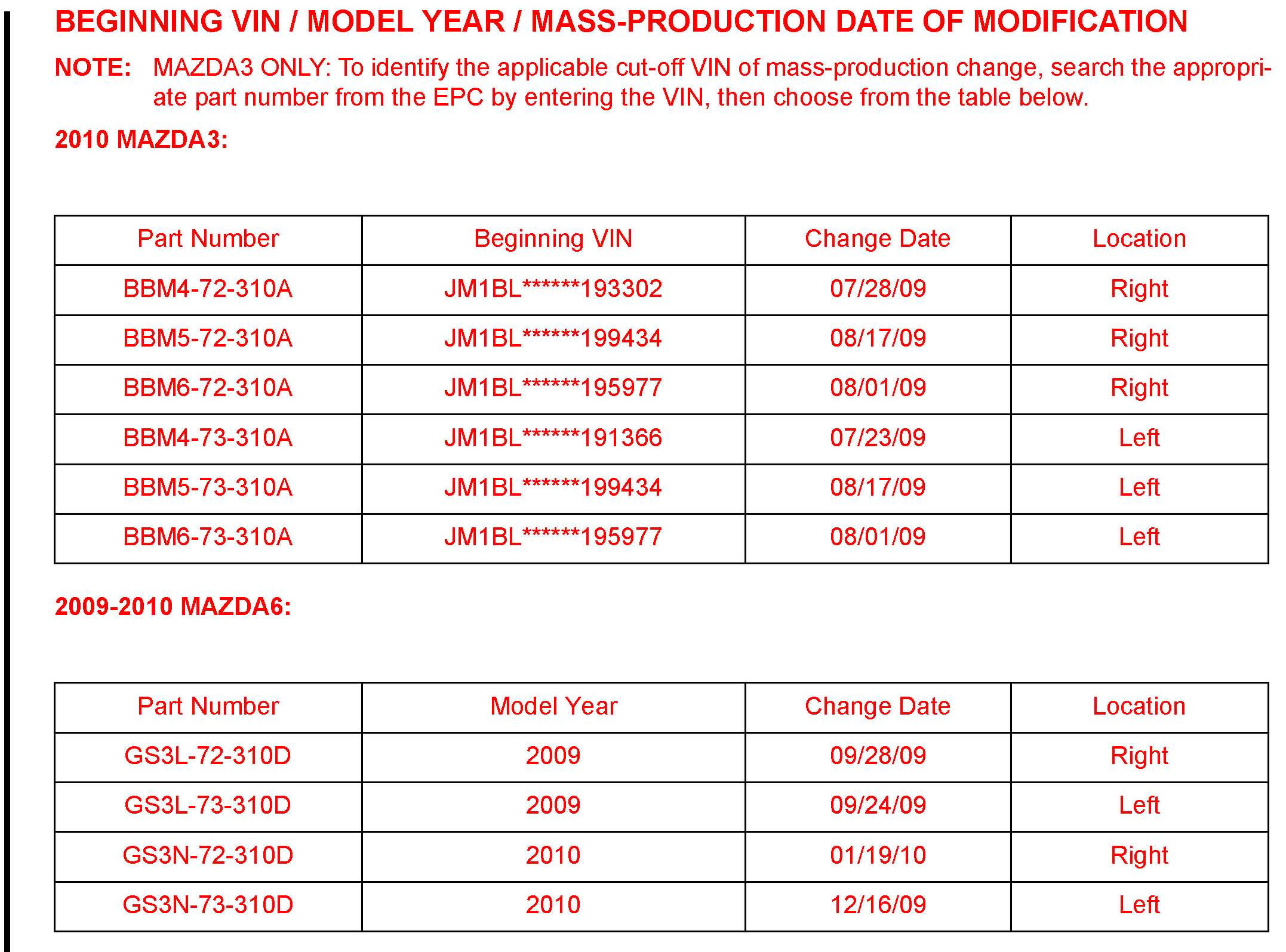 Beginning VIN / Model Year / Mass-Production Date of Modification
