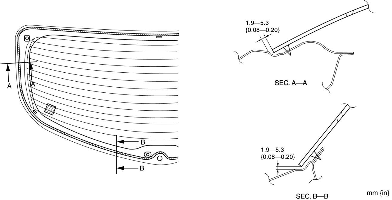 - Proper installation of the glass may be difficult if sealant is cracked or the glass is pushed out by air pressure when a door is opened/closed with all the window glass closed. Keep the door glass open until the rear window glass installation is completed.