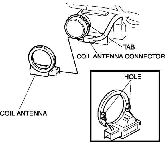 5. Detach the steering lock tabs from the holes on the coil antenna.