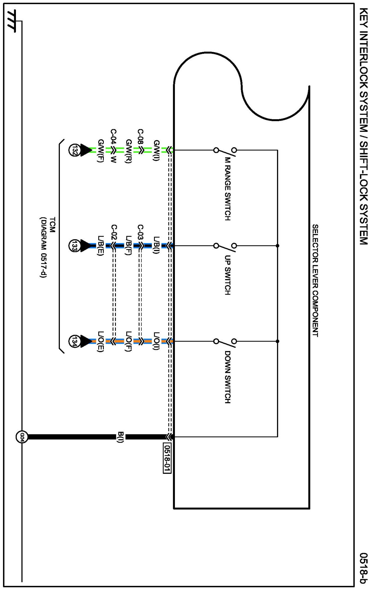 Diagram 0518-b (Key Interlock System/Shift-Lock System)