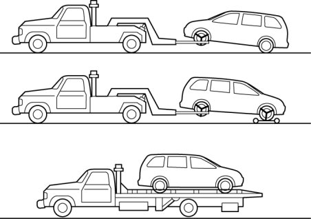 - A towed vehicle usually should have its drive wheels (front wheels) off the ground. If excessive damage or other conditions prevent this, use wheel dollies.