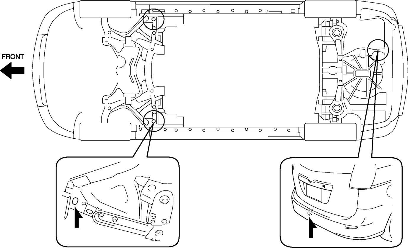 - When transporting the vehicle by flat bed tow truck or trailer, secure the vehicle to the trailer using the holes and left tie-down loop shown in the figure.