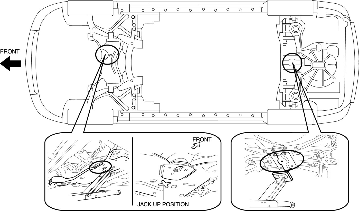 - Improperly jacking a vehicle is dangerous. The vehicle can slip off the jack and cause serious injury. Use only the correct front and rear jacking points and block the wheels.