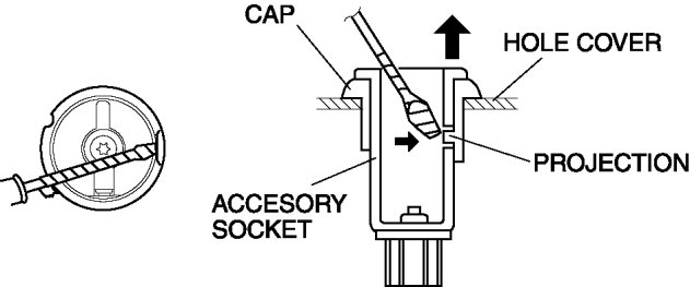 1. While pressing a tape-wrapped fastener remover against the cap projection, pull the accessory socket outward.