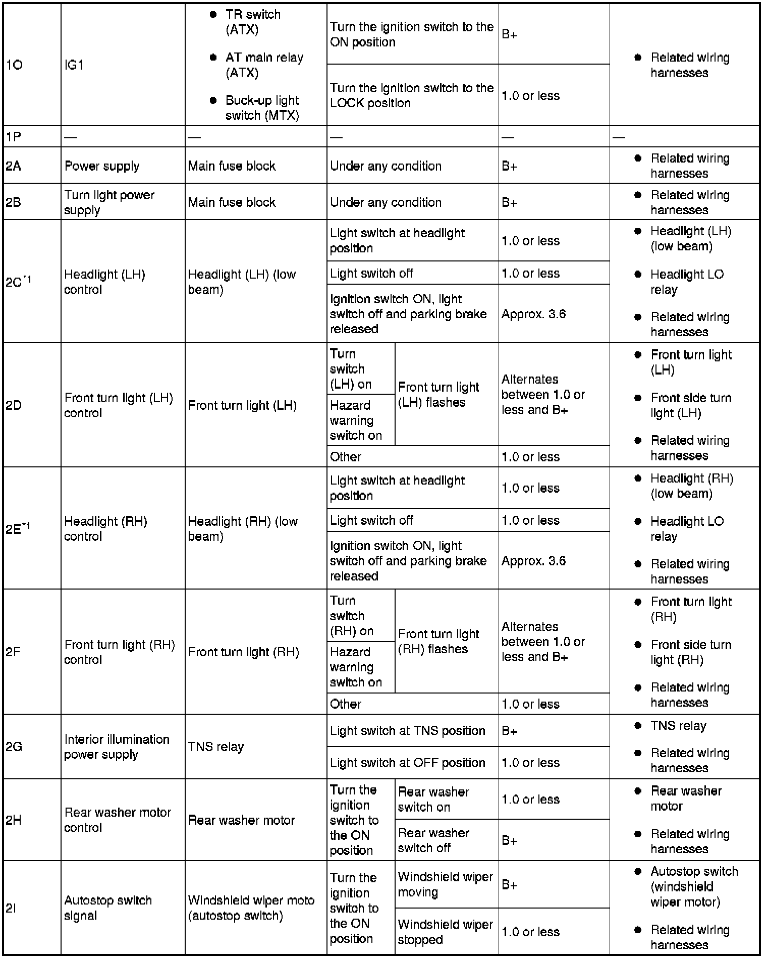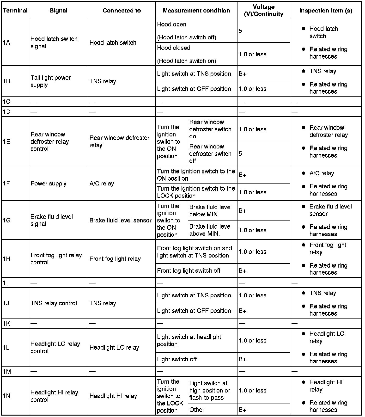 Terminal Voltage Table (Reference) (Part 1):