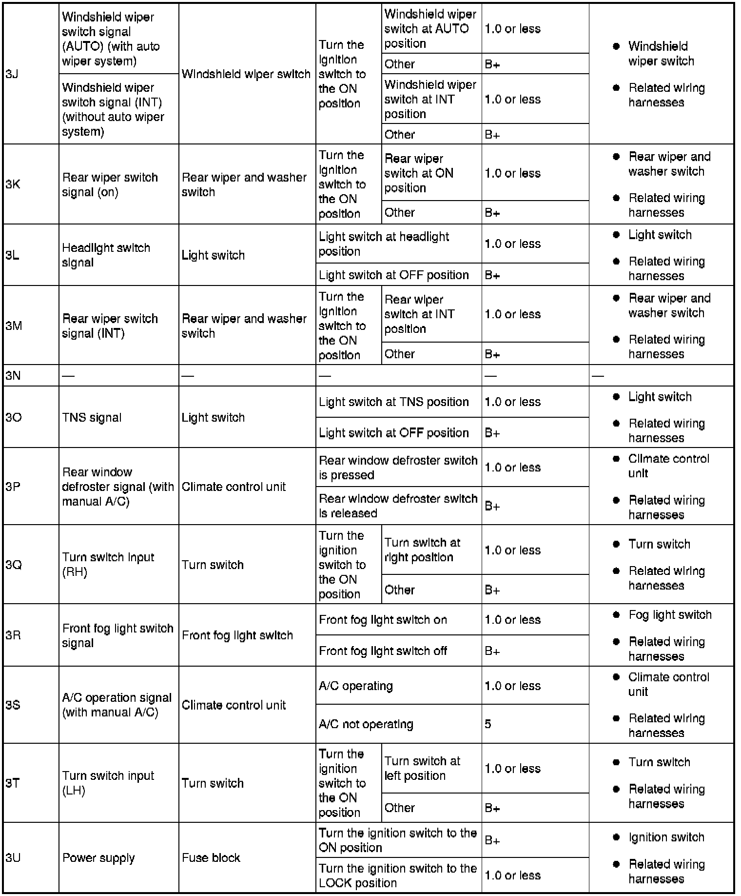 Terminal Voltage Table (Reference) (Part 3):