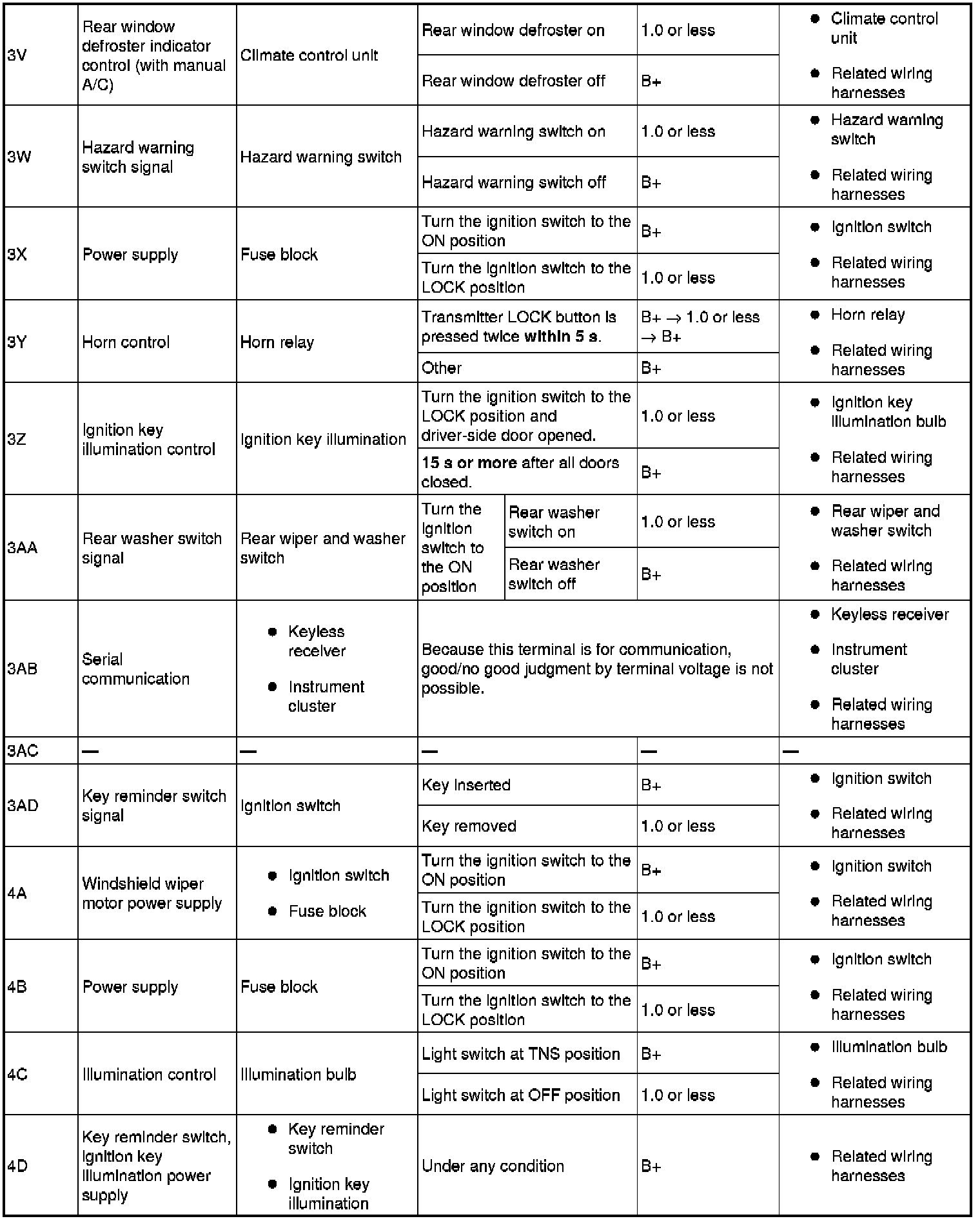 Terminal Voltage Table (Reference) (Part 4):