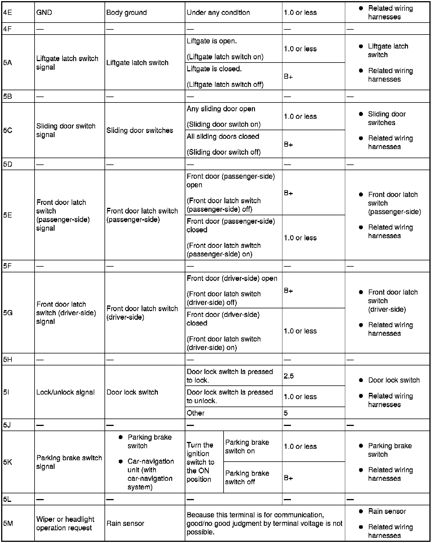 Terminal Voltage Table (Reference) (Part 5):