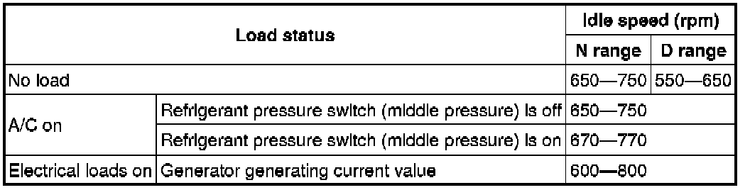 - Excludes temporary idle speed drop just after the loads are turned on.