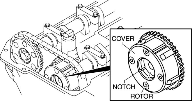 - If the both notches are still not aligned, replace the variable valve timing actuator.