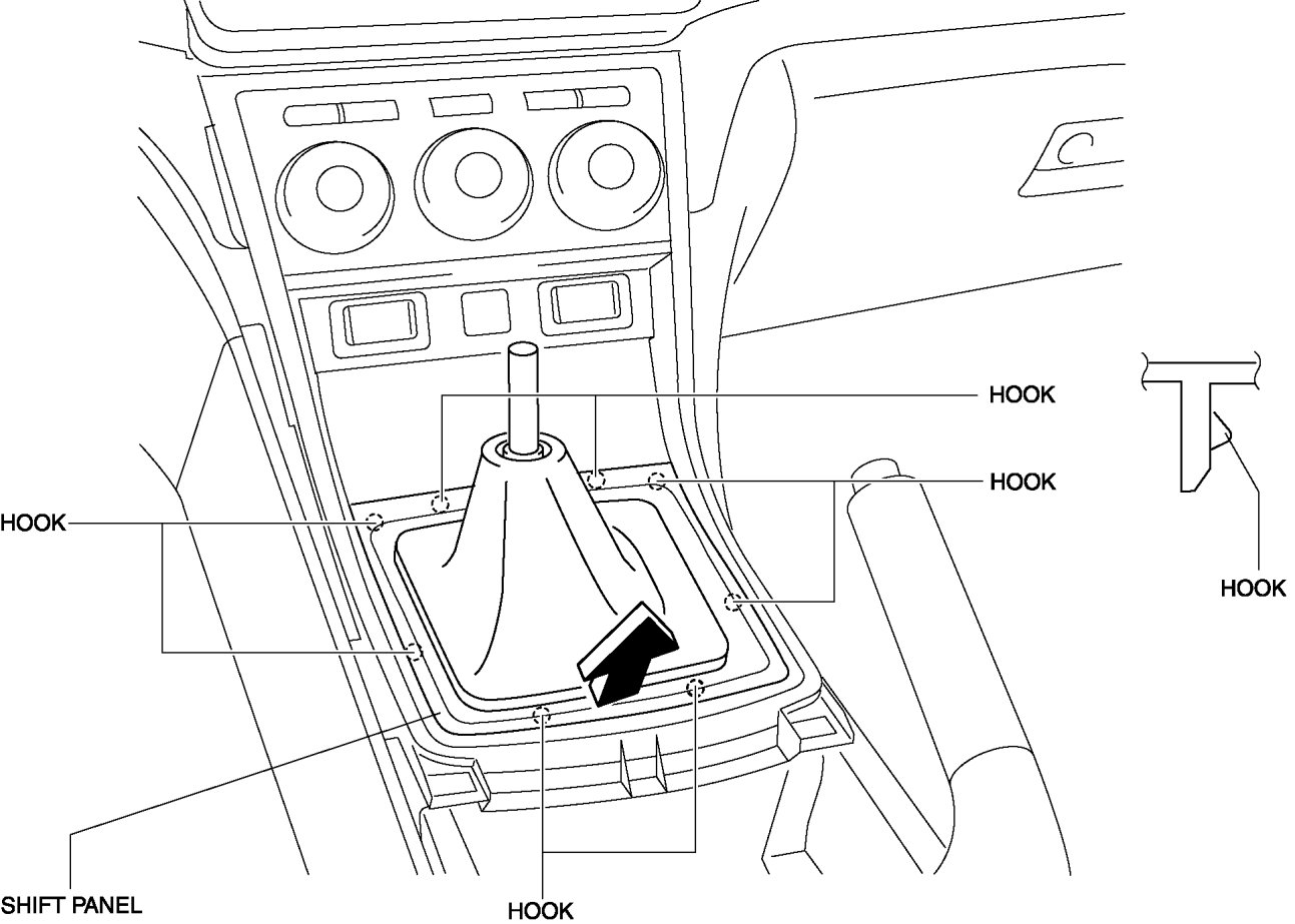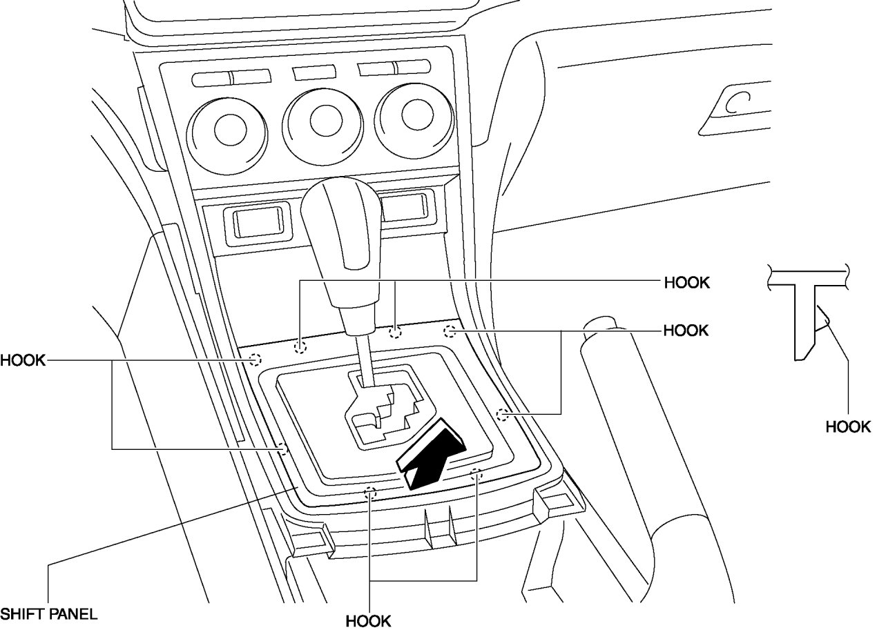2. Pull the shift panel in the direction of the arrow shown in the figure and remove it while detaching the hooks.