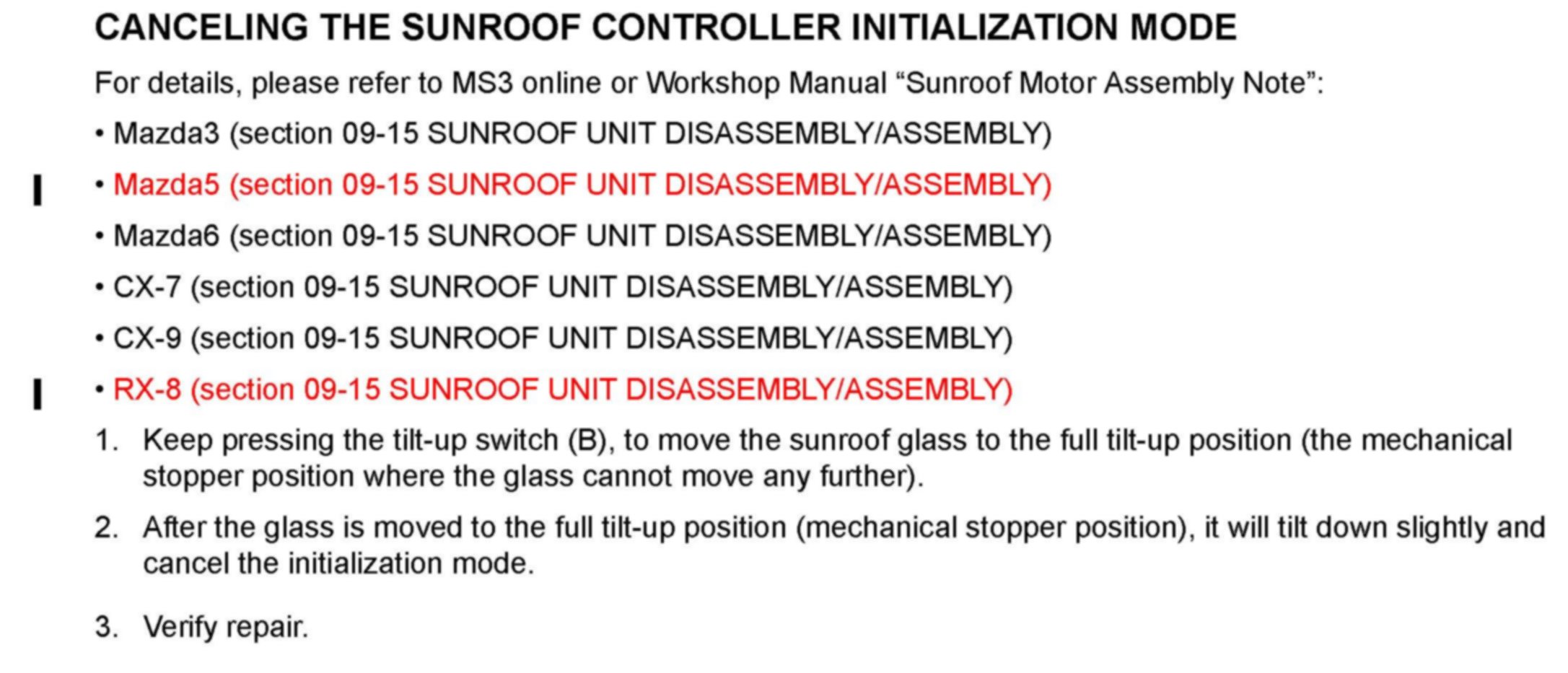 CANCELING THE SUNROOF CONTROLLER INITIALIZATION MODE