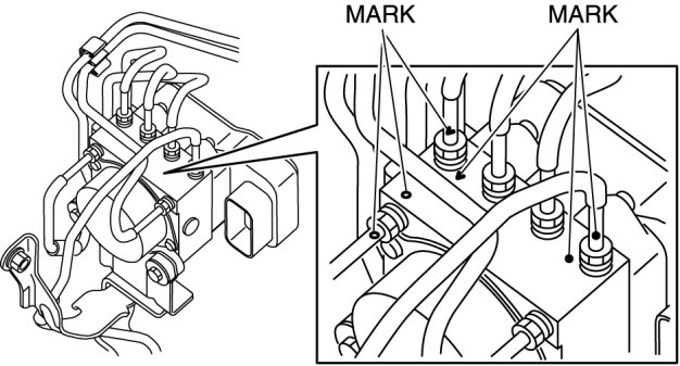 1. Place an alignment mark on the brake pipe and ABS/TCS HU/CM.