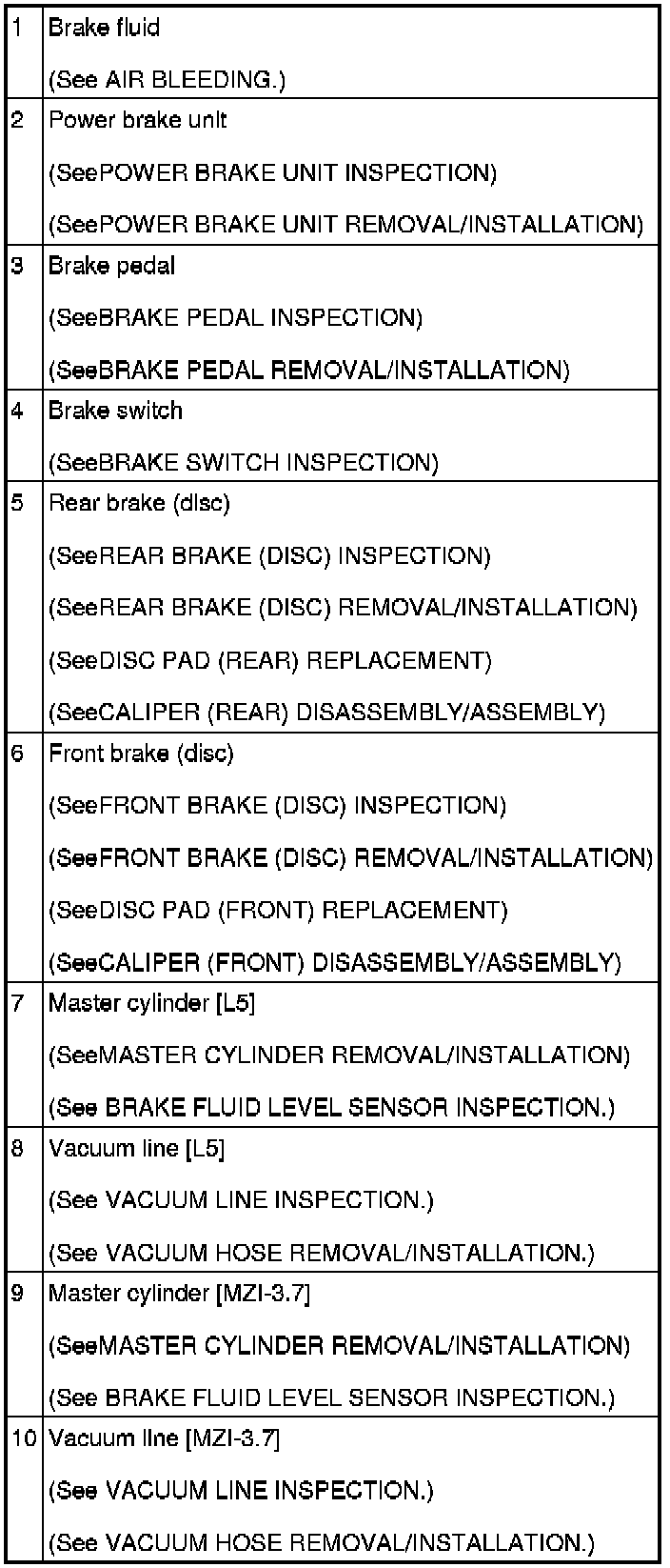 CONVENTIONAL BRAKE SYSTEM LOCATION INDEX
