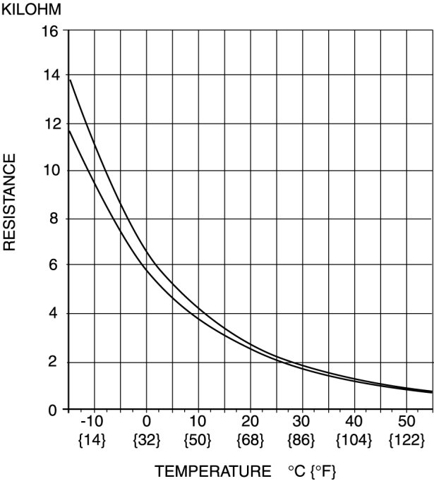 - If the characteristics of the passenger compartment temperature sensor are not as shown in the graph, replace the passenger compartment temperature sensor.