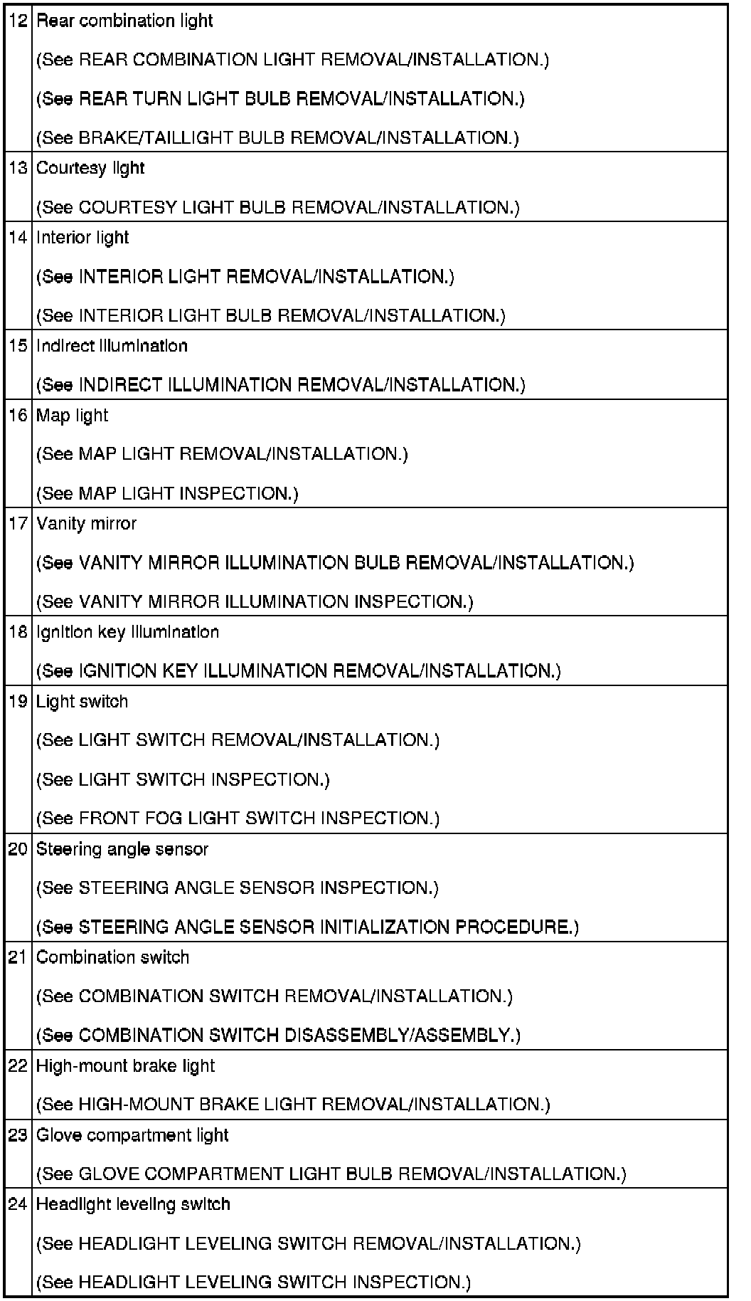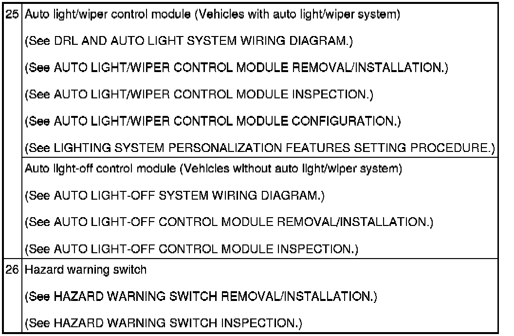 LIGHTING SYSTEMS LOCATION INDEX