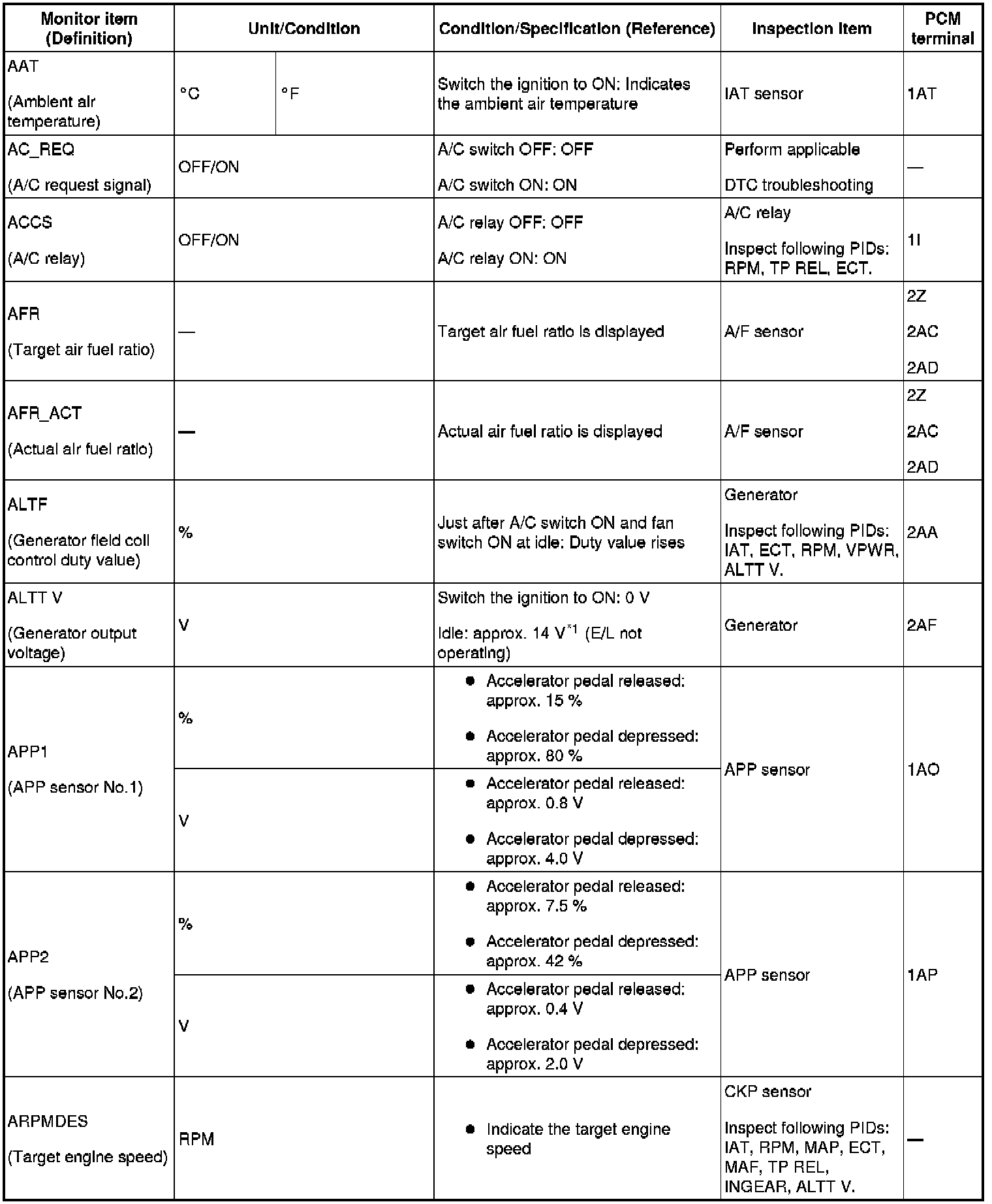 PID/DATA Monitor Table (reference) Part 4: