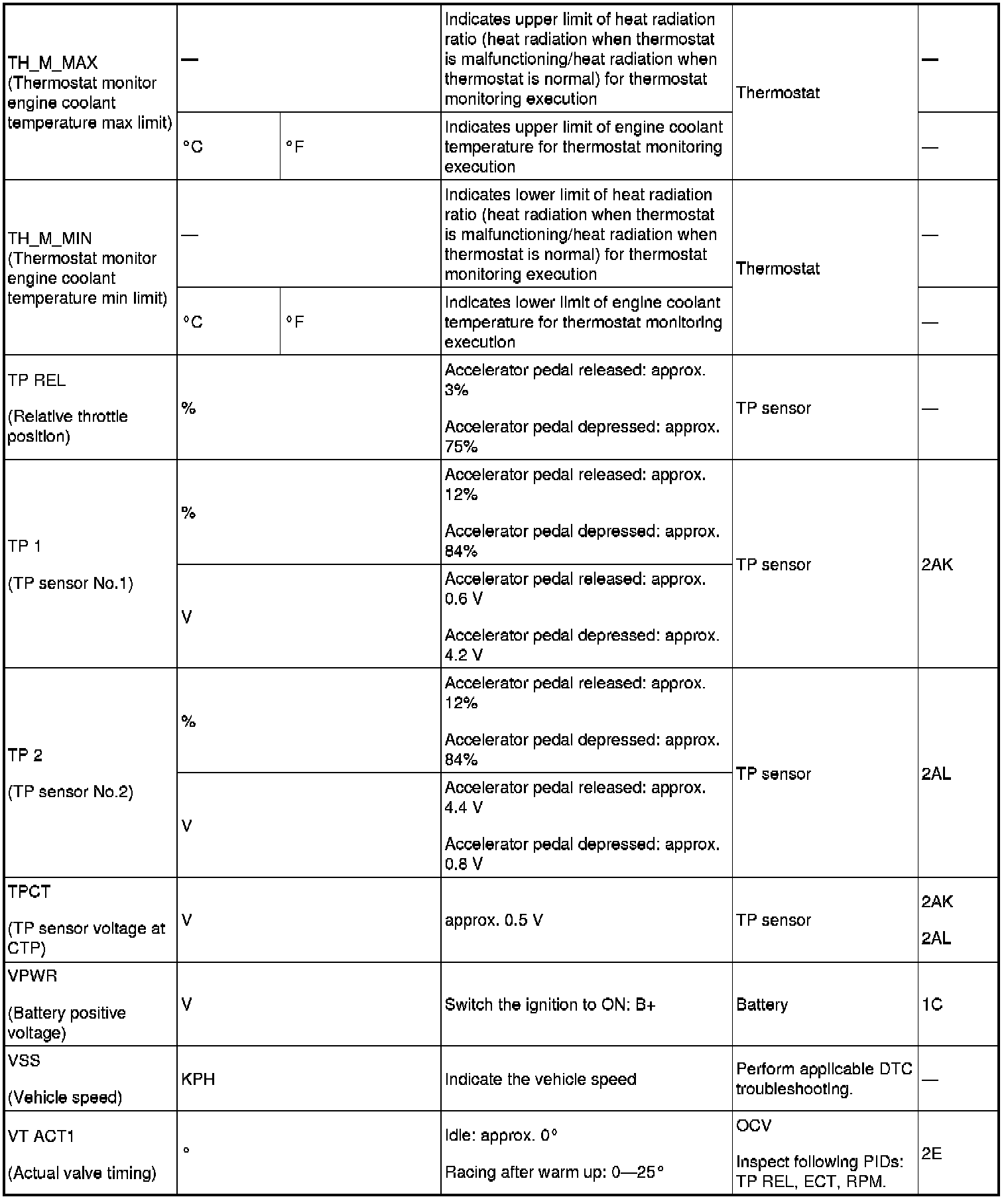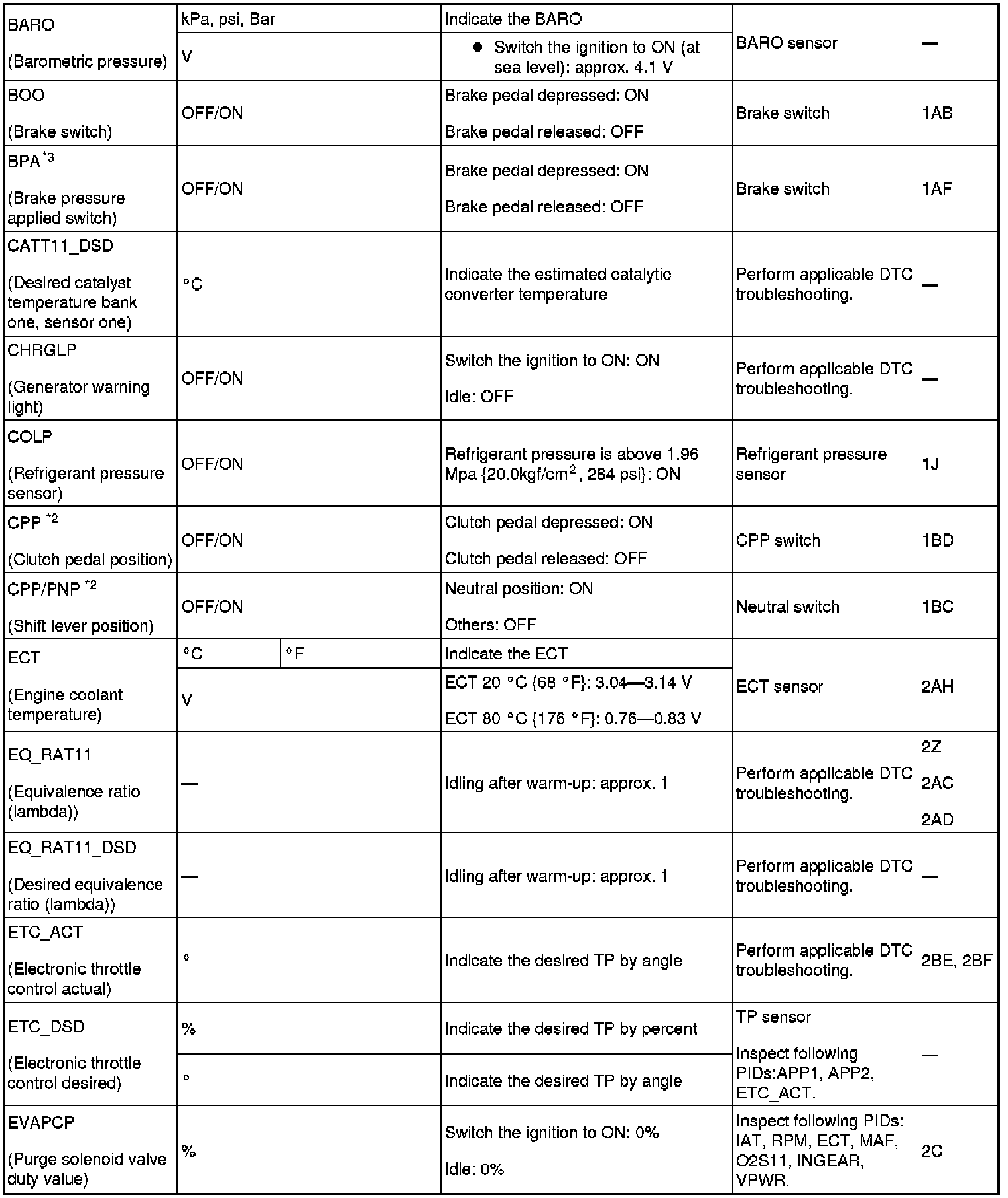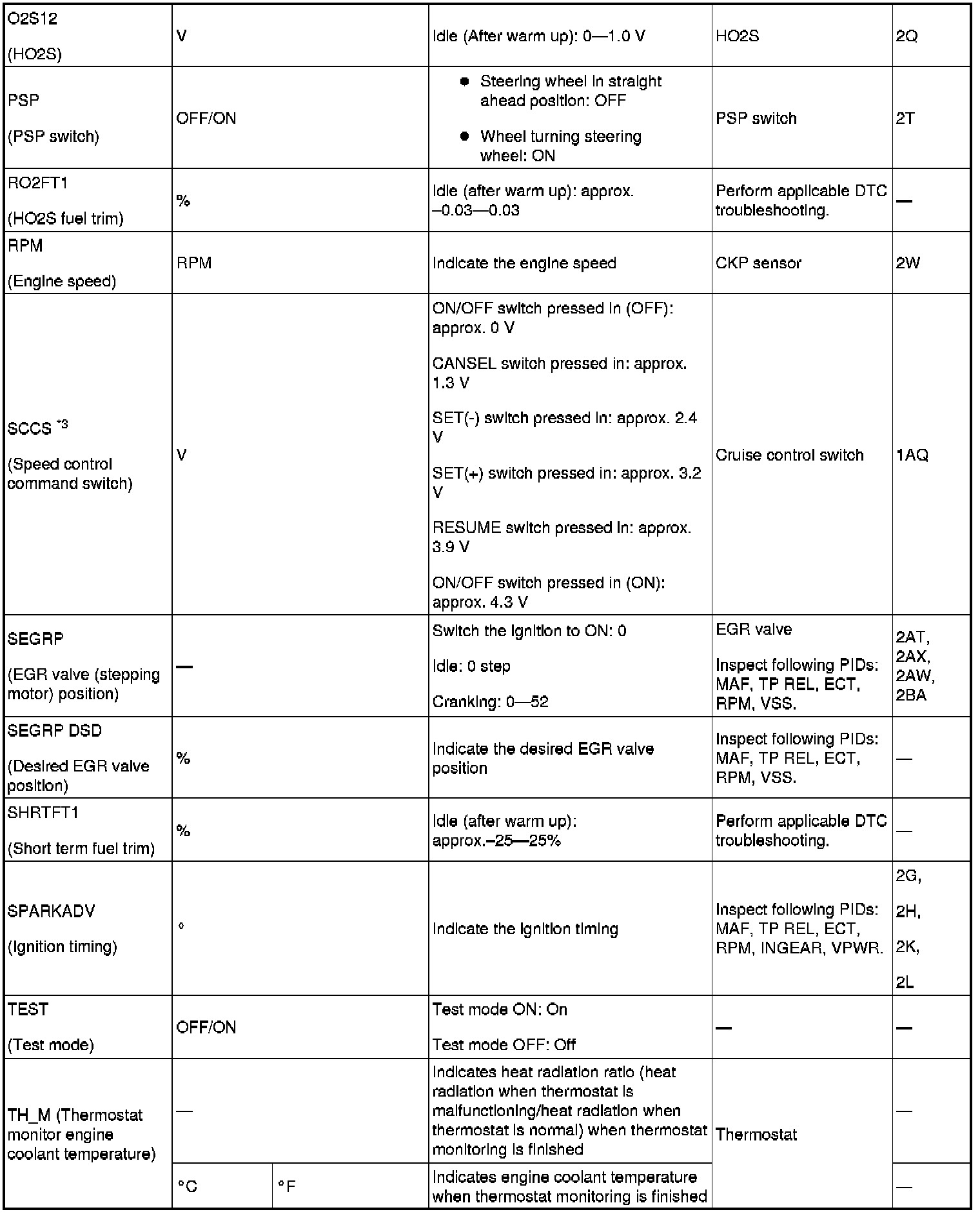 PID/DATA Monitor Table (reference) Part 2: