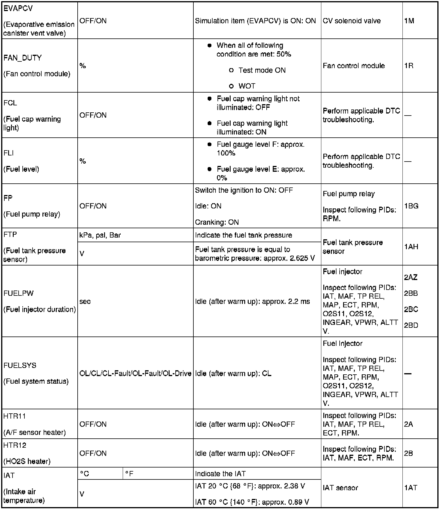 PID/DATA Monitor Table (reference) Part 7: