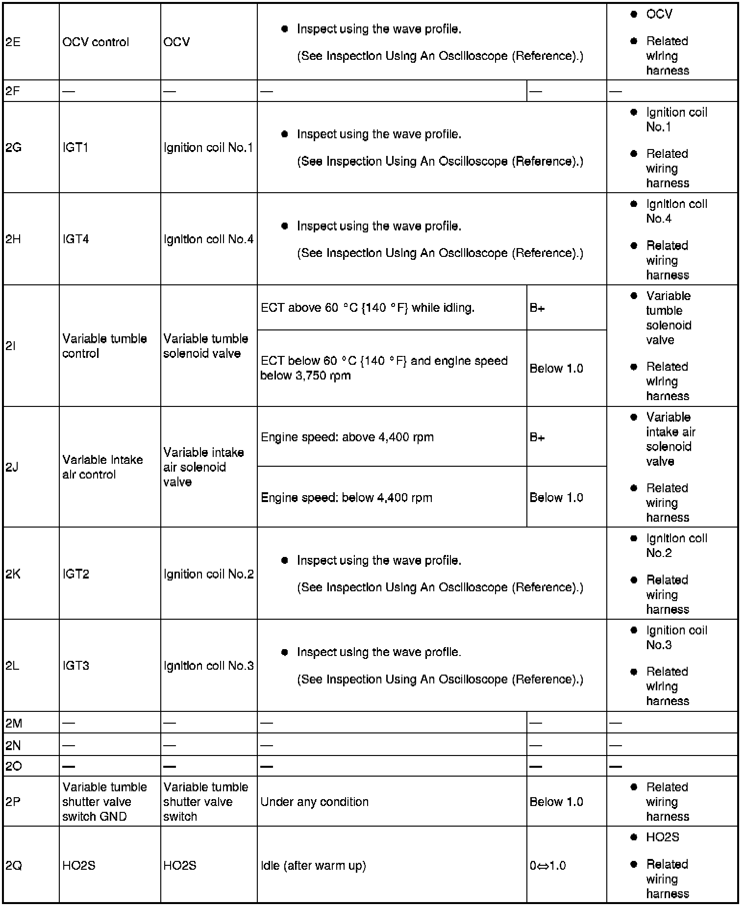 - IGT2(ignition coil No.2): 2K(+)-body ground(-)