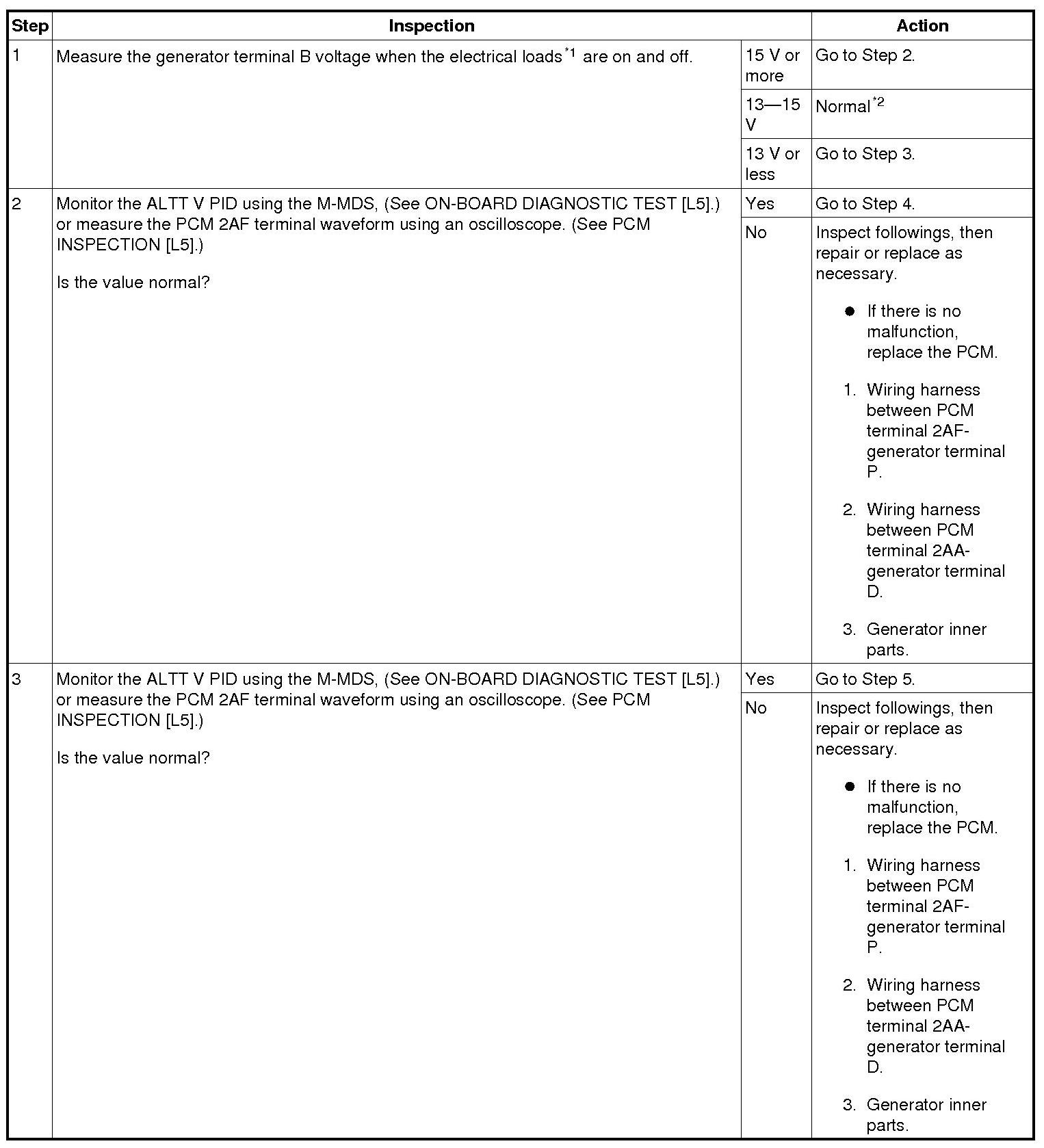 - If the generator warning light does not go out, perform the DTC inspection, then perform troubleshooting according to the corresponding diagnostic procedure. On-Board Diagnostic Test DTC Table