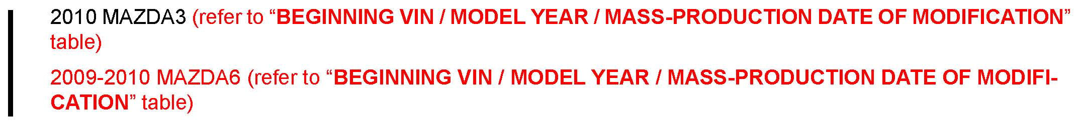Beginning VIN / Model Year / Mass-Production Date of Modification