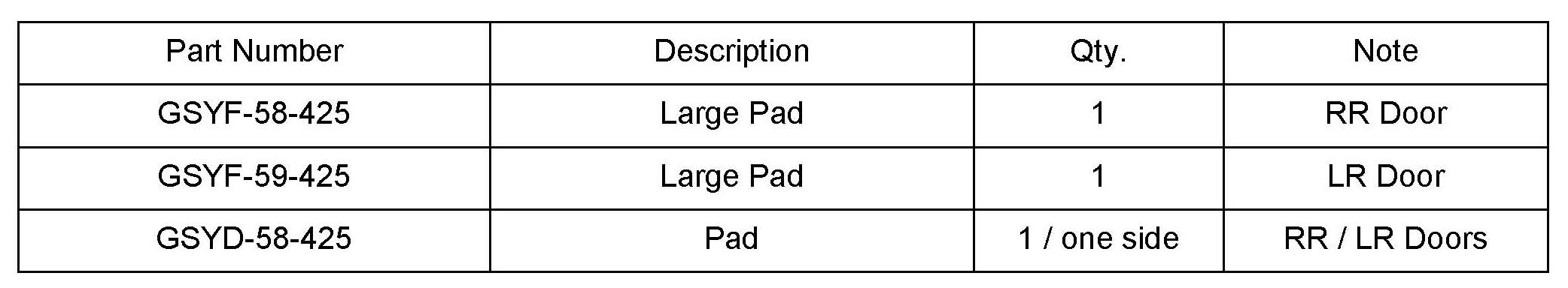 2. Remove concerned door latch, then apply pads according to the following procedure.